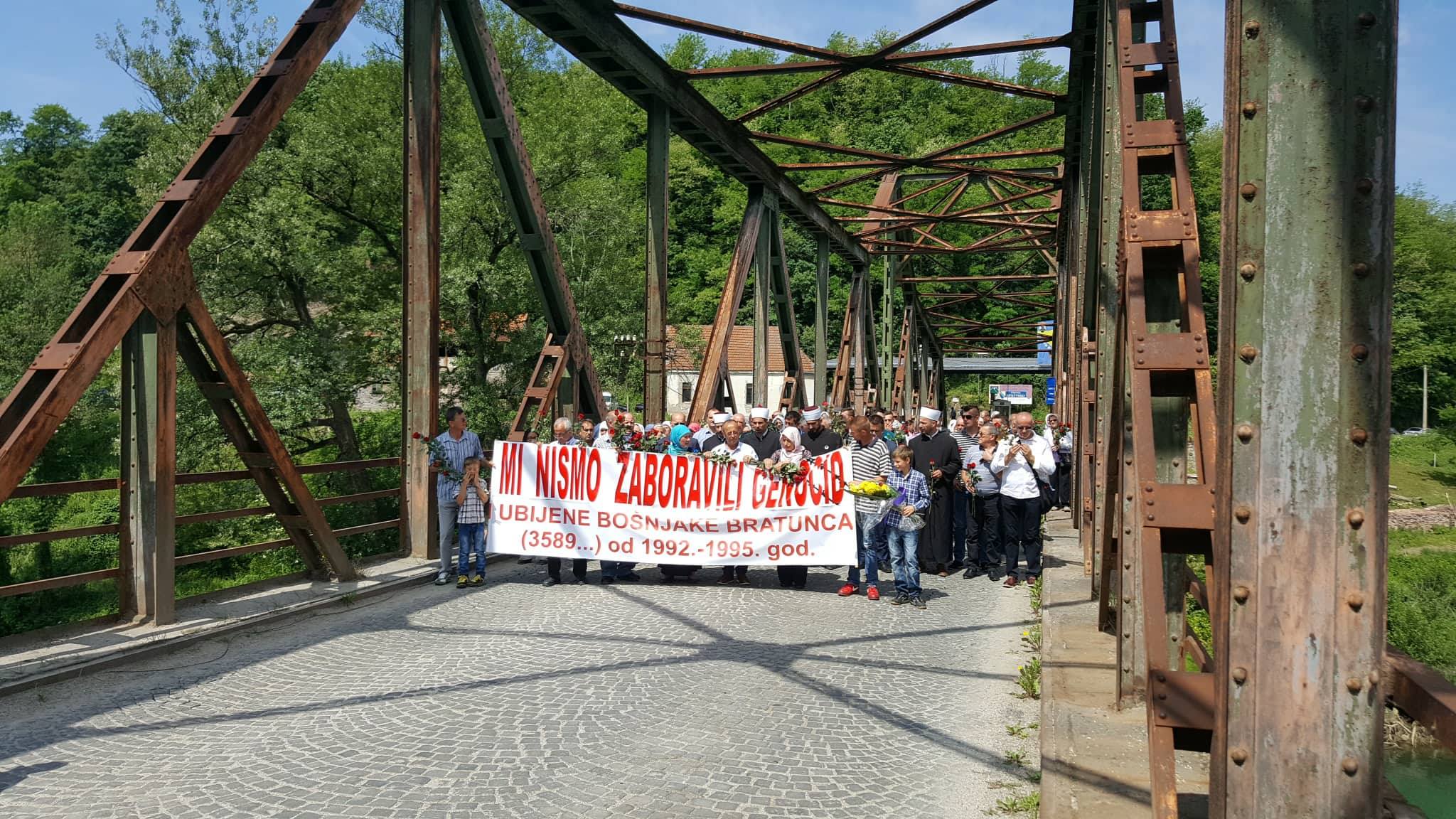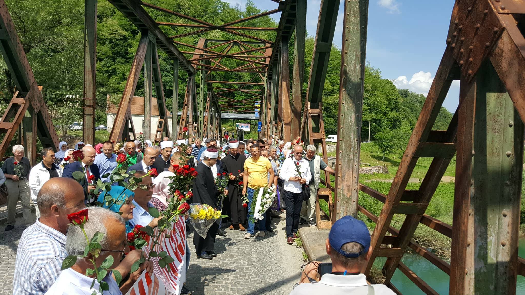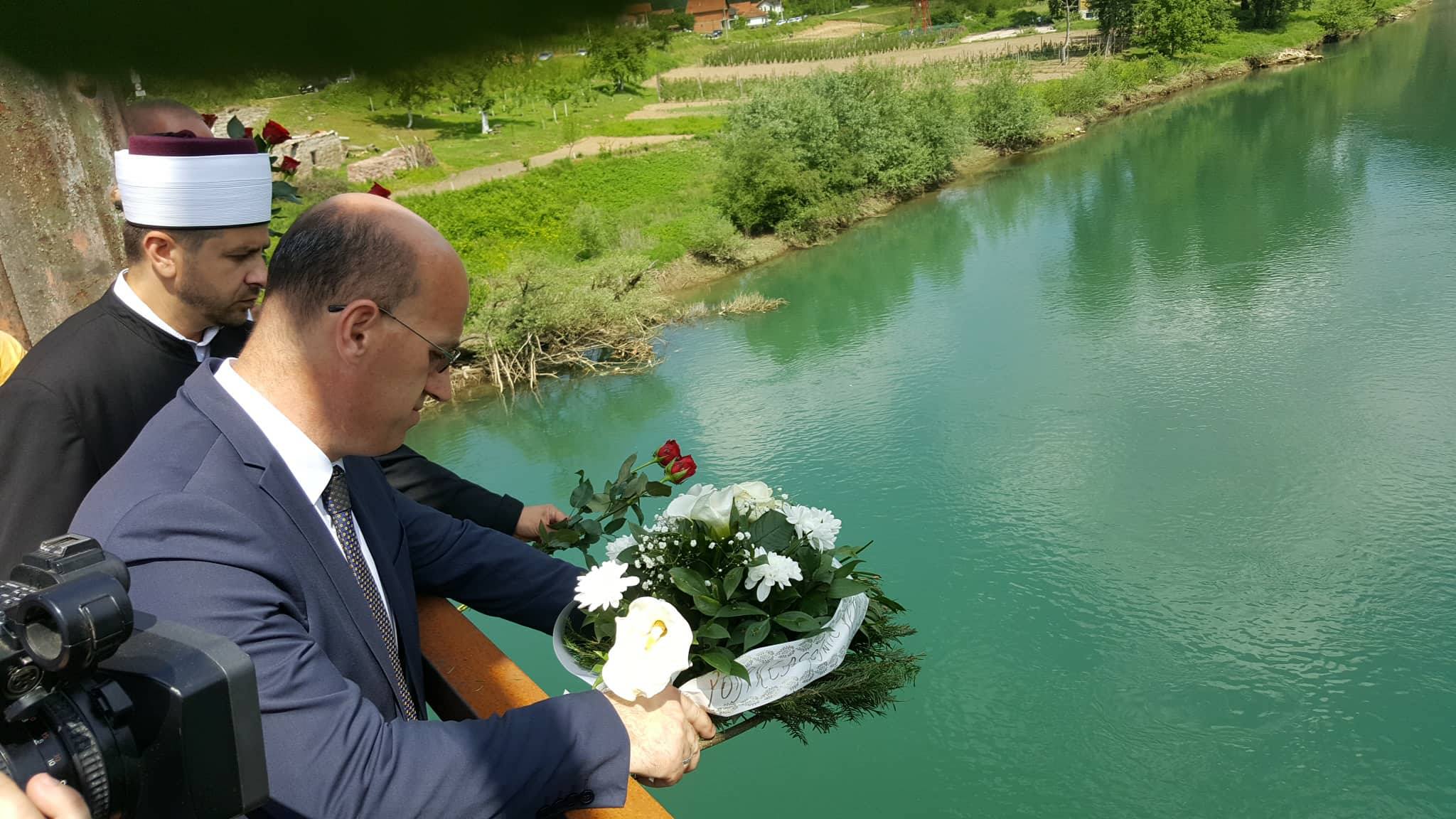 Nakon toga su se uputili na Ljubovijski most odakle su u rijeku Drinu bacili 603 ruže za ubijene Bratunčane, a posjetili su i masovnu grobnicu u Redžićima.