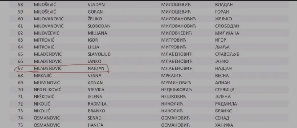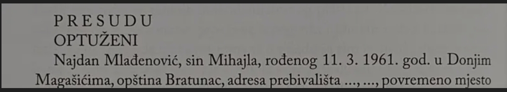 “Iz pravca Bratunca je naišlo par vojnika. Čula sam da jednog zovu Najdan. Imao je čarapu na glavi i izdvojio se iz te grupe, došao do nas i rekao: ‘Ovo sve treba pobiti.’ Onda je otišao za drugim vojnicima”, izjavila je pred Sudom BiH jedna od svjedokinja u predmetu Mlađenović i drugi.