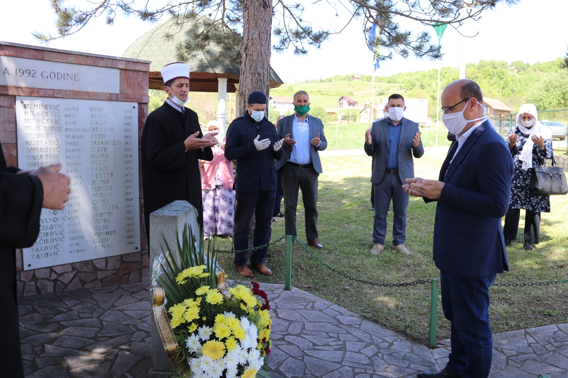 Predstavnici udruženja žrtava i vlasti su, najprije, položili cvijeće na spomen – obilježju ispred lokalne džamije, a potom su posjetili lokalitet masovne grobnice, koja je udaljena nekoliko stotina metara.