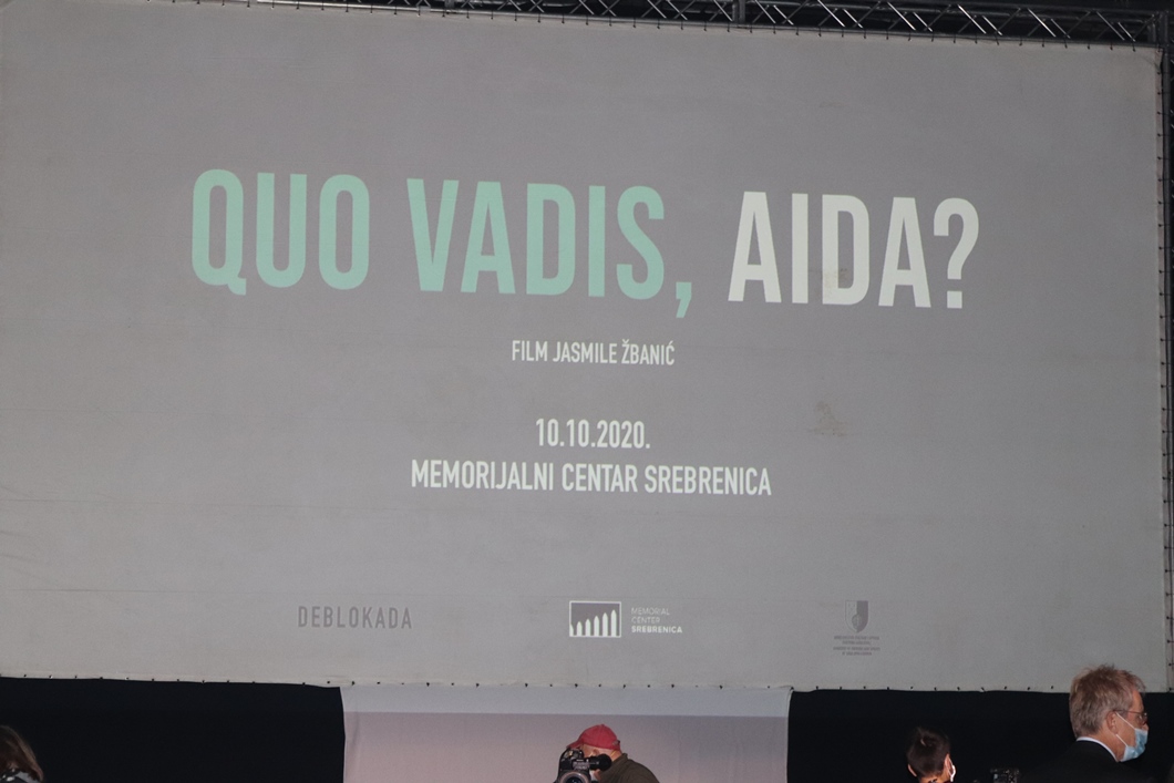 U Memorijalnom centru Srebrenica-Potočari danas je, 10.10. 2020. godine, upriličena premijera filma "Quo vadis, Aida?" bosanskohercegovačke rediteljice Jasmile Žbanić.