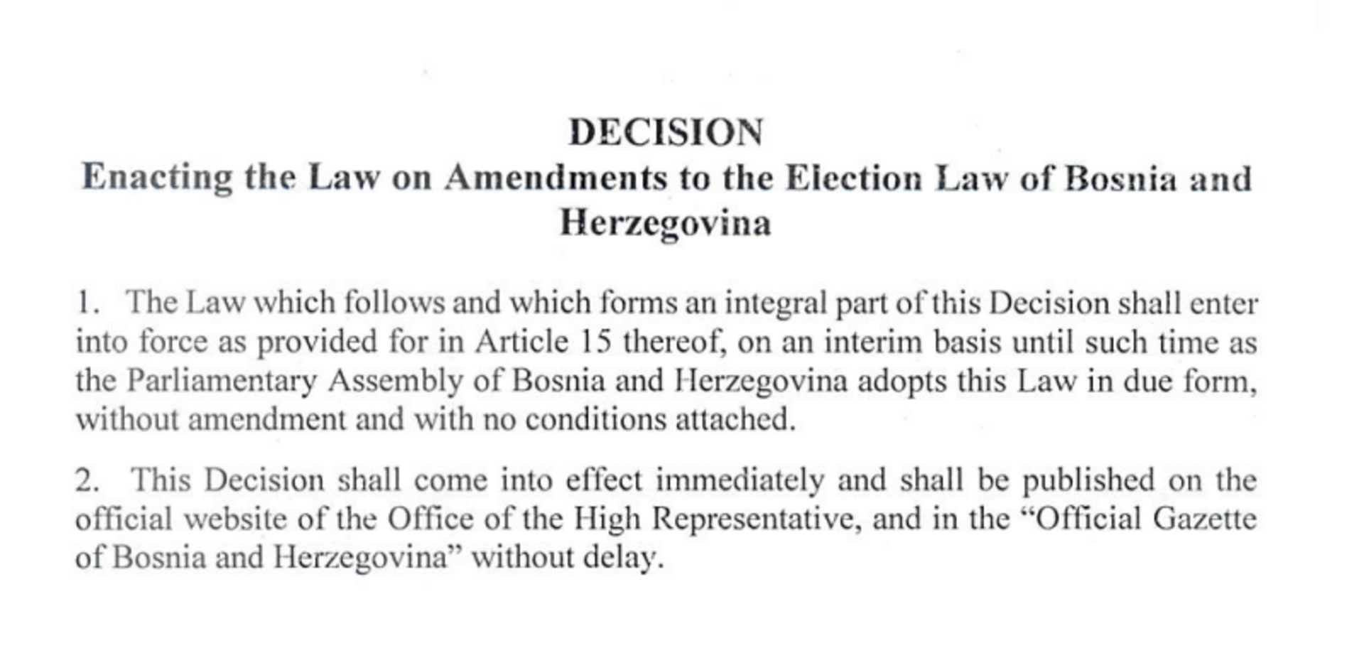 Kako je za Politicki.ba potvrđeno, nametnut će samo dio planirane odluke - onak koji se tiče detaljnih izmjena Izbornog zakona Bosne i ...